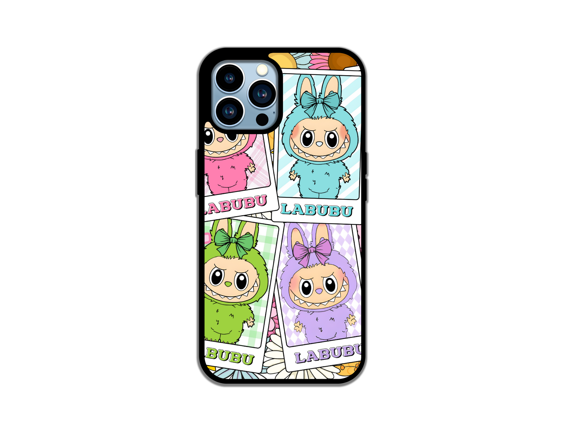 Add a touch of charm to your tech with the Labubu phone case — where sweet meets stylish. This case features a delicate pattern of soft blue bows on a sleek, high-quality finish, making it the perfect accessory for anyone who loves subtle elegance with a playful twist.